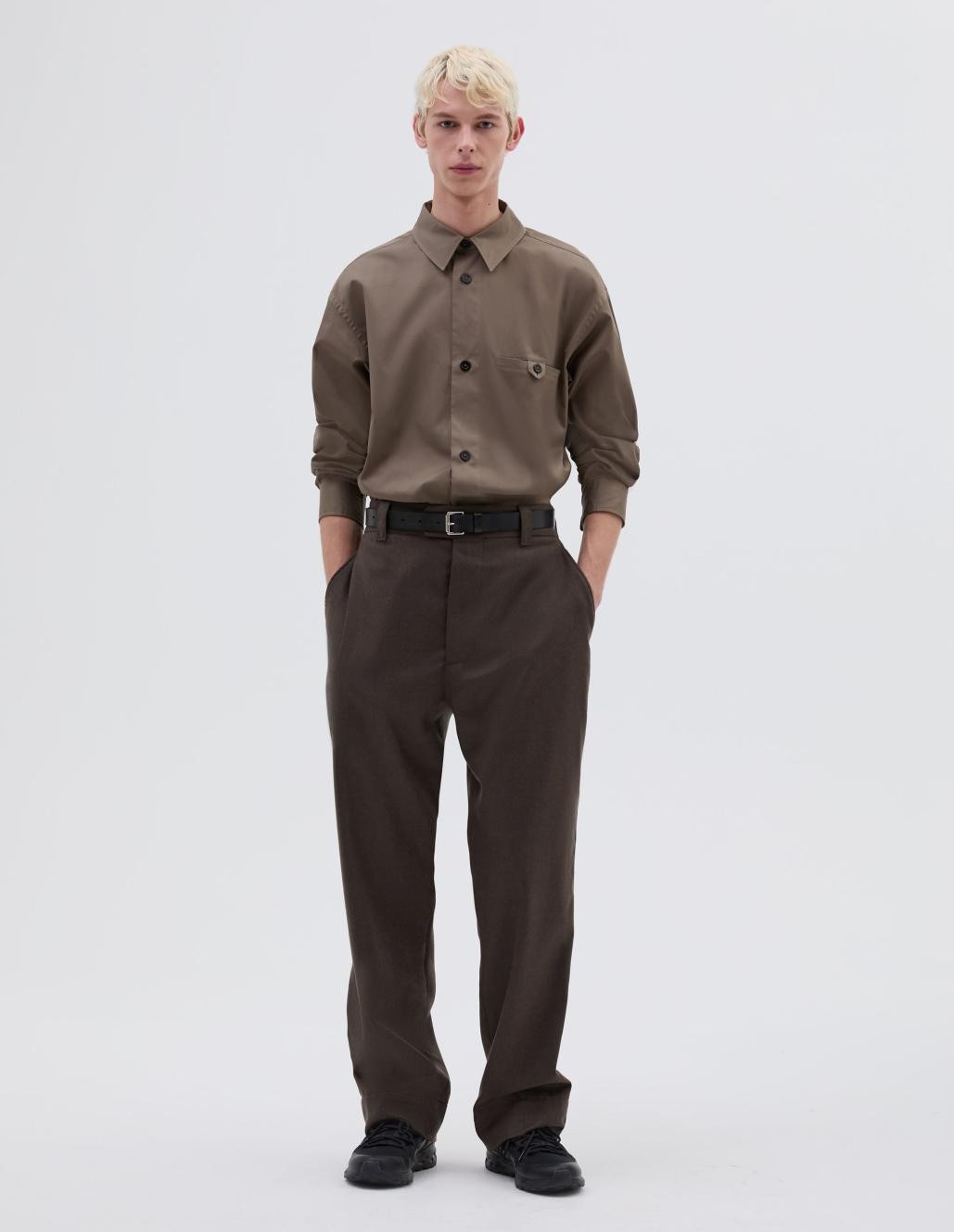 WORSTED WOOL FLANNEL RELAXED PLEATED TROUSER. BUTTON FLY WITH BUTTON TAB FASTENING. HALF ELASTICATED WAISTBAND WITH BELT LOOPS. SLANT POCKETS. WELT AND CONCEALED BUTTON FASTENING FLAP BACK POCKETS. FABRICATED IN LIGHTWEIGHT WOOL FLANNEL WITH A SOFT HAND FEEL. WOVEN IN ENGLAND BY FOX BROTHERS.