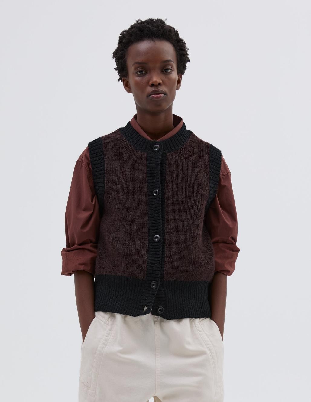 Mhl. Weste mit Kontrastbesatz, Schokoladenbraun/Schwarz | Damen-Strickwaren von Margaret Howell