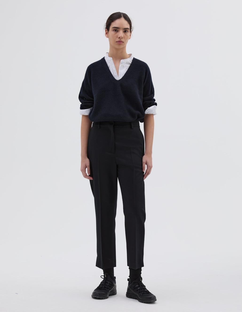 HLAČE MIDI STRUKA. USKI KROJ. ZATVARANJE NA RAJSFER S KOPČANJEM NA ČIČAK. OMOČICE ZA REMEN. BOČNI DŽEPOVI S DETALJIMA ŠIPKI. BOČNI RUB S PORAVNANJEM. STRAŽNJI DŽEPOVI S GUMBIĆIMA. IZRAĐENE OD SREDNJE TEŠKE VUNENE FLANELE S MEKIM OSJEĆAJEM. TKAN U ENGLESKOJ OD STRANE FOX BROTHERS.