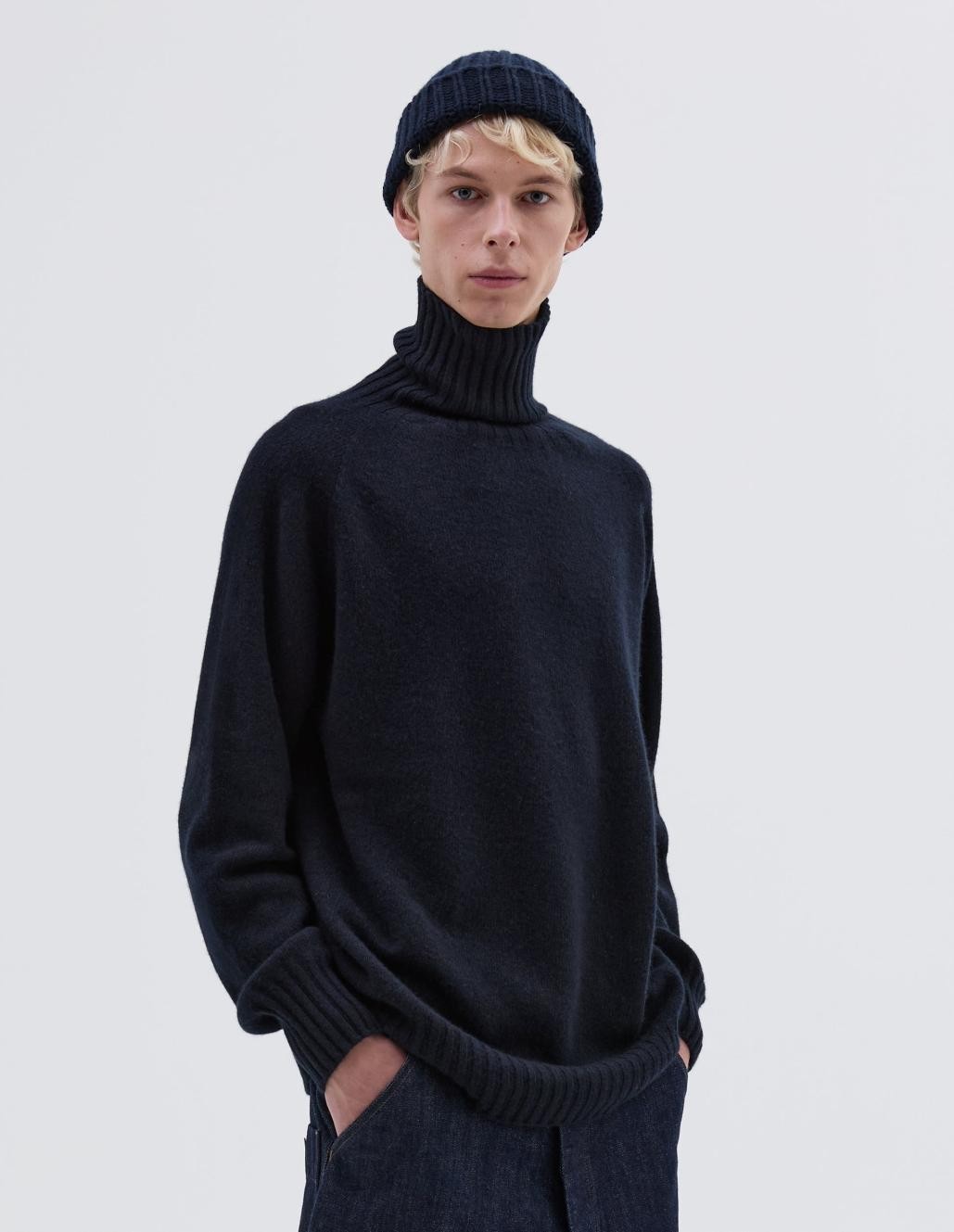 와이드 롤넥 다크 네이비 트위스트 | 남성 마가렛 하웰 니트웨어