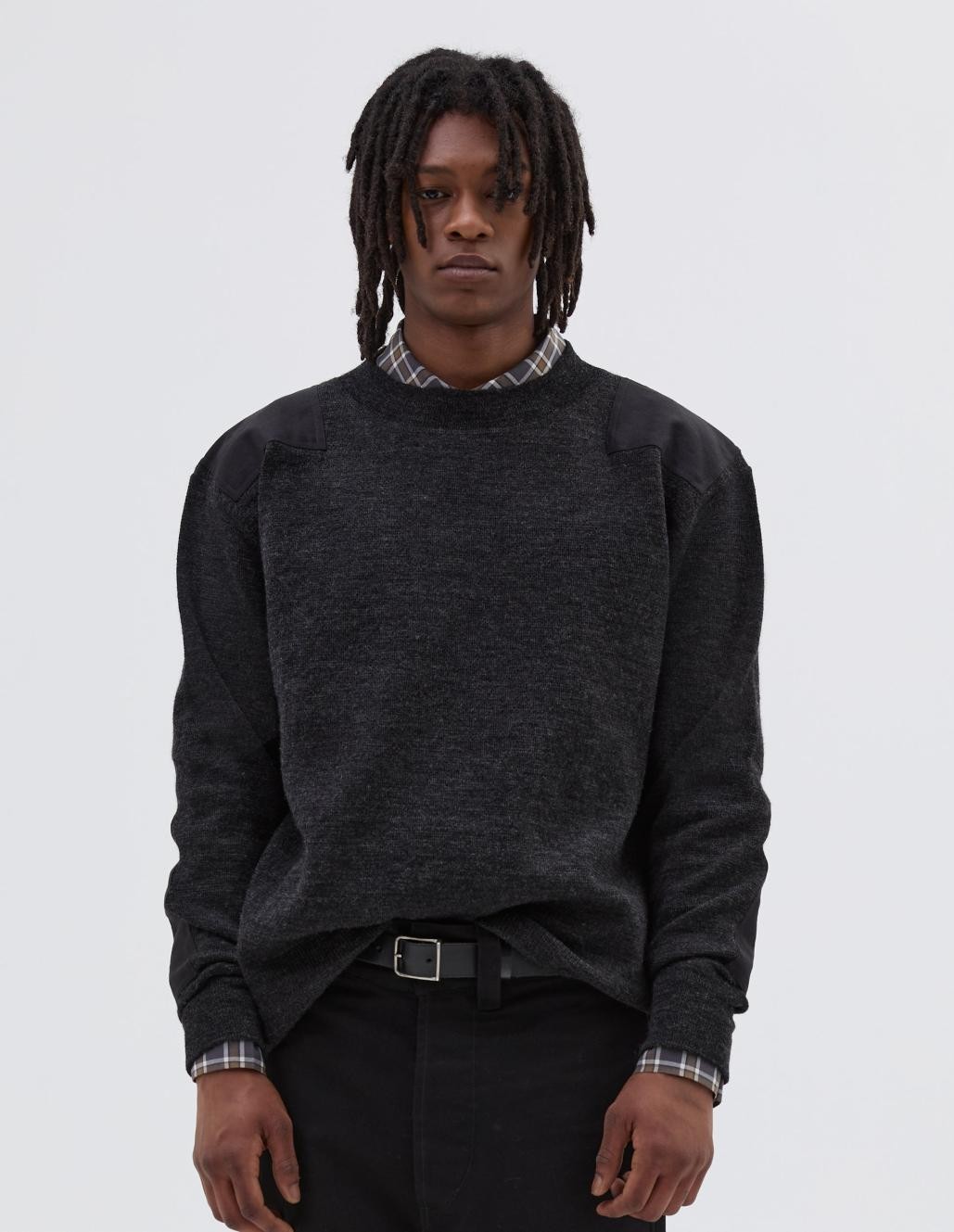 Mhl. Woven Patch Crew Charcoal | Heren Margaret Howell Knitwear