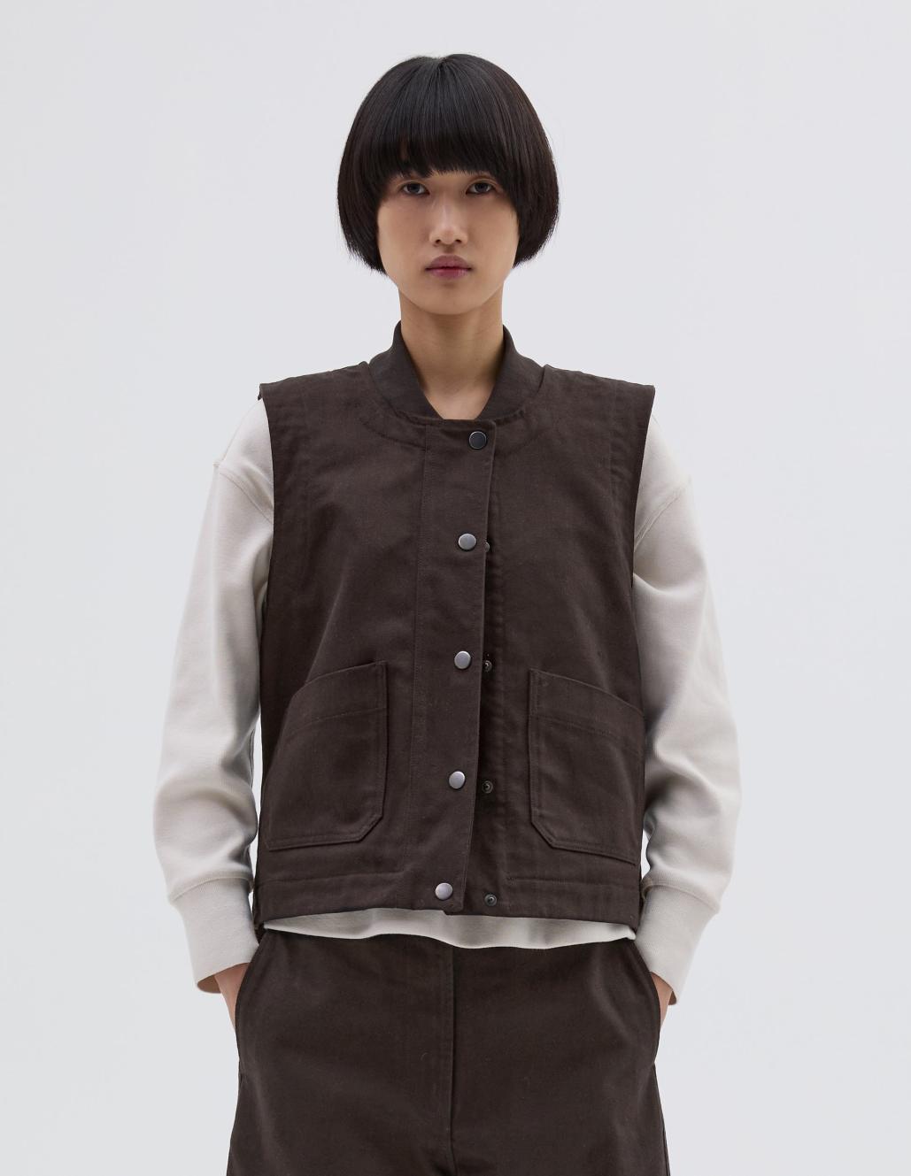 Mhl. Patch Pocket Jerkin Donkerbruin | Dames Margaret Howell Jassen & Mantels