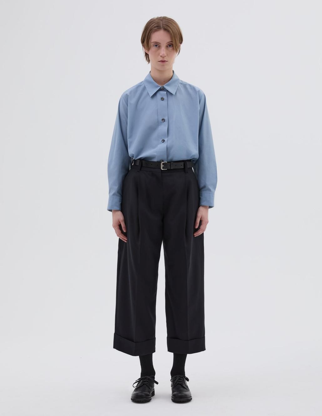 LICHTGEWICHT WOLLEN BROEK MET DIEPGEPLOOIDE PIJPEN. REGULAR SNIT, CROPPED, WIJDE PIJPEN. RITSSLUITING MET HAAK- EN STREEPSLUITING. RIEMLUSSEN. SCHUINE ZAKKEN. OMSLAGZOOM. ACHTERZAK MET PASVORM. GEMAAKT VAN LICHTGEWICHT WOL MET EEN ZACHT GEVOEL. GEWEVEN IN ENGELAND DOOR FOX BROTHERS.