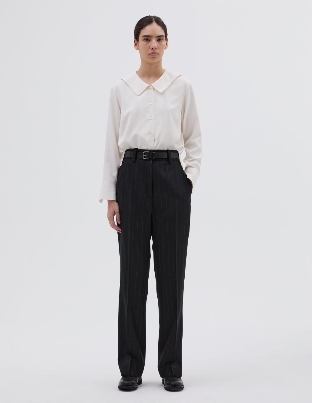 UNIFORME BROEK. RECHTE VORM. RITSSLUITING MET DUBBELE HAAK- EN STREEPSLUITING. RIEMLUSSEN. SCHUINE ZAKKEN. VERBORGEN JETZAKKEN MET KNOOPLAP. GEMAAKT VAN MIDDELZWARE BRITSE WOLLEN TWILL DIE ZACHT AANVOELT.