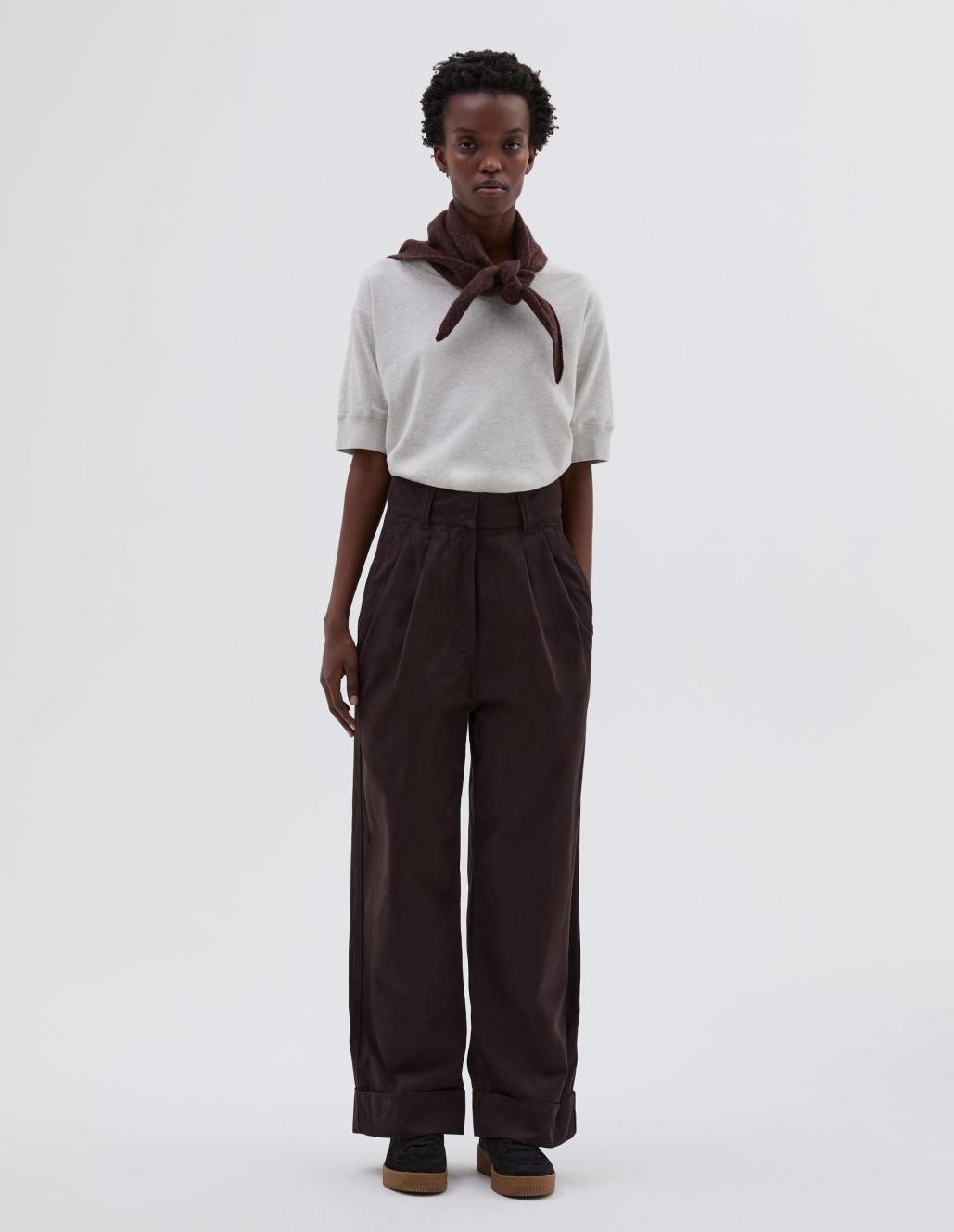 Mhl. Plisset oppbrettsbukse i torv | Margaret Howell-bukser for kvinner