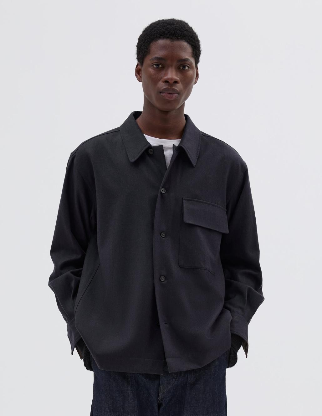 Čierna vrchná košeľa s klopou a vreckom | Pánske košele Margaret Howell
